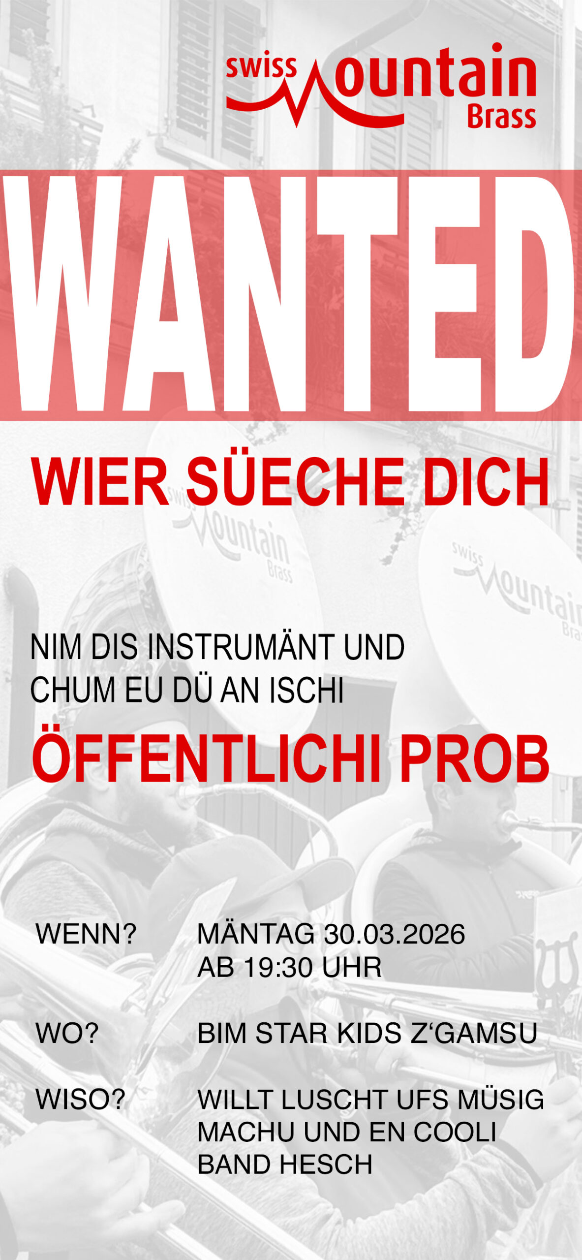 Öffentliche Probe Montag 30.03.2026 ab 19.30Uhr beim Star Kids in Gamsen.